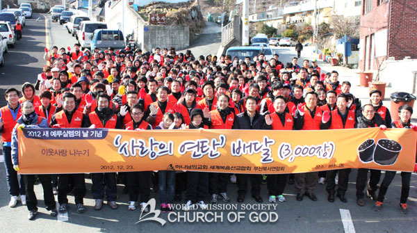 12¿ù 23ÀÏ, »õ ¿¹·ç»ì·½ÀÇ ³¯À» ±â³äÇØ ºÎ»êµ¿·¡±³È¸¿Í ºÎ»êÁ¦2¿¬Á¦±³È¸ ¼ºµµ 150¿© ¸íÀÌ ¿ùµ¿ Áغñ¿¡ ¾î·Á¿òÀ» °Þ°í ÀÖ´Â ÀÌ¿ôµé¿¡°Ô µû¶æÇÑ ¾î¸Ó´ÏÀÇ »ç¶ûÀ» ÀüÇß´Ù. ¼ºµµµéÀº ¹üõ4µ¿¿¡ °ÅÁÖÇÏ´Â µ¶°Å³ëÀÎÀ» ºñ·ÔÇØ »ýȰ°í¿¡ ½Ã´Þ¸®´Â 16°¡Á¤¿¡ 3500ÀåÀÇ ¿¬ÅºÀ» ¹è´ÞÇß´Ù.