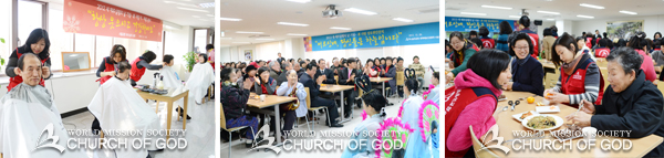 Á¤¿À ¹«·Æ, ¾î¸£½ÅµéÀ» ȯ¿µÇÏ´Â Àλ縻°ú ÇÔ²² ÀÛÀº °ø¿¬ÀÌ ½ÃÀ۵ƴÙ. ¼º°¡´ë¿øµéÀÇ Âù¼ÛÀ» ½ÃÀÛÀ¸·Î ºÎ³à ¼ºµµÀÇ Èï°Ü¿î â, ºÎäÃã ¹«´ë µîÀÌ ÆîÃÄÁ³´Ù. °ø¿¬ µÚ¿¡´Â ¾î¸£½Åµé²² ¸ñµµ¸®¸¦ ¼±¹°ÇÏ°í ¾È¸¶¸¦ ÇØµå¸®´Â ½Ã°£À» °¡Á³´Ù. ¼ºµµµéÀÌ »ì°©°Ô ¾î±ú¸¦ ÁÖ¹°·¯µå¸®ÀÚ ¾î¸£½ÅµéÀº ȯÇÏ°Ô ¿ôÀ¸¸ç ±â»µÇß´Ù. Á¡½É½Ã°£¿¡´Â ¼ºµµµéÀÌ Á¤¼º²¯ ÁغñÇÑ À°°³Àå°ú ¶±, °úÀÏ µî À½½ÄÀ» ´ëÁ¢ÇÏ°í ¿ÀÈÄ¿¡´Â ¹Ì¿ë Àü¹®°¡ ¼ºµµµéÀÌ ¾î¸£½ÅµéÀÇ ¸Ó¸®¸¦ ¼ÕÁúÇØµå·È´Ù. ÇҾƹöÁö, ÇҸӴϵéÀº ¡°³ªÀ̰¡ µé¾î ¾îµð¸¦ °¡·Á ÇØµµ ¼Ò¿ÜµÅ¼ ¸ø °¬´Âµ¥ ÁÁÀº ±¸°æÀ» ½ÃÄÑÁ༠°í¸¿´Ù¡±, ¡°¸Ó¸® ¼ÕÁúÀ» ÀÚÁÖ ¸øÇϴµ¥ ÀÌ·¸°Ô ÇØÁÖ´Ï 10³âÀº Àþ¾îÁø °Í °°´Ù¡±¸ç °í¸¶¿öÇß´Ù.